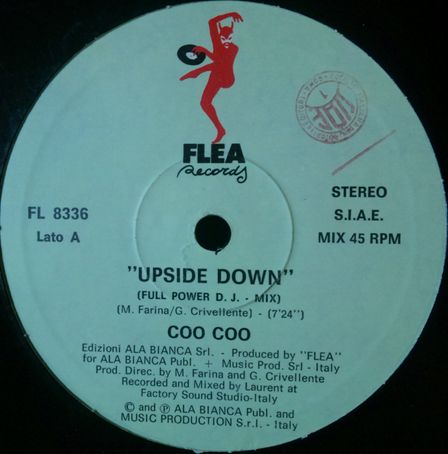 COO COO - UPSIDE DOWN is an italo disco project by MAURO FARINA ( SAIFAM ) and GIULIANO CRIVELLENTE and was released 1988 by ALA BIANCA ITALY.